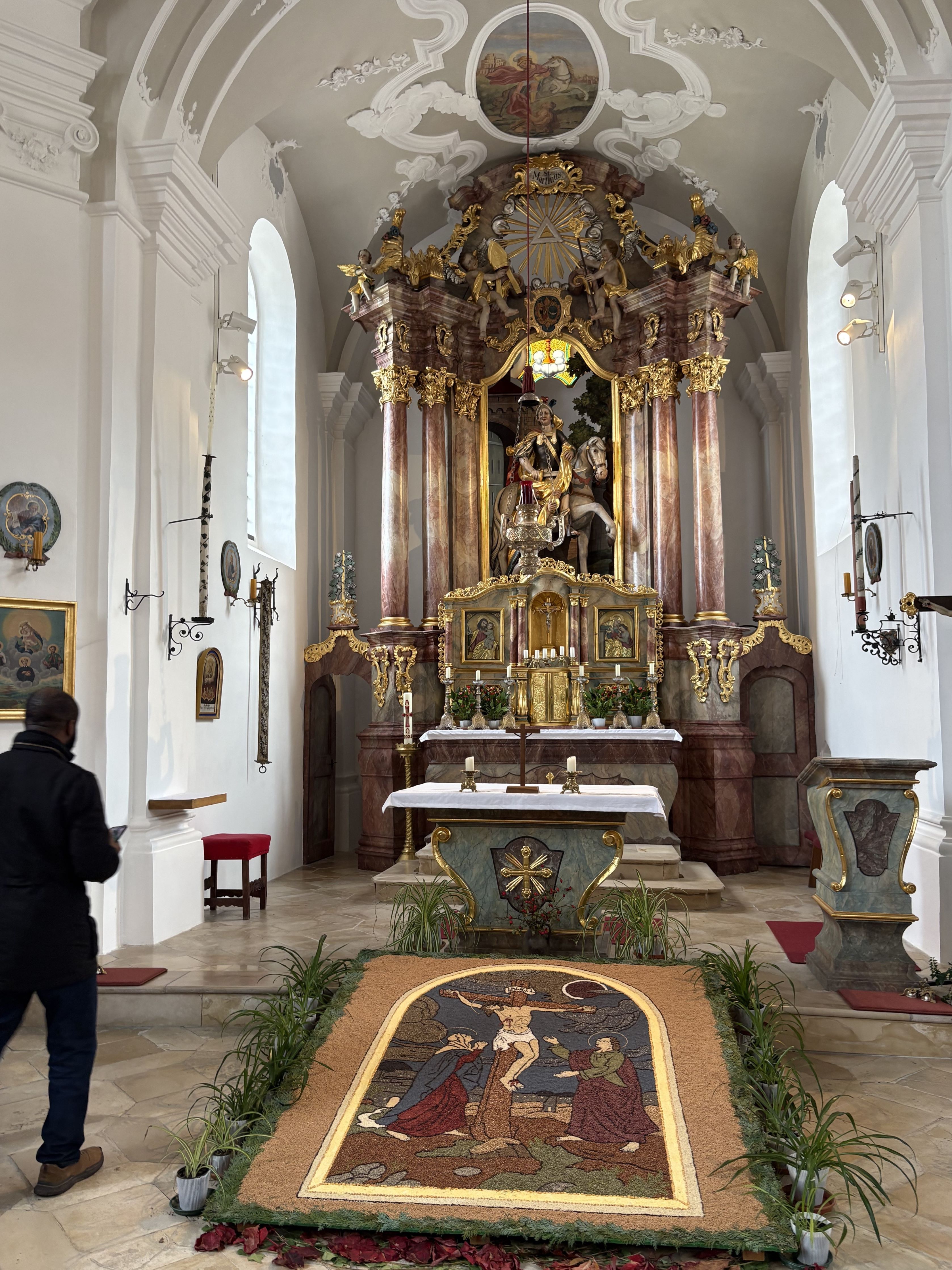 Nach dem Mittagessen führte die Fahrt am frühen Nachmittag nach Griesstetten zur Wallfahrtskirche Zu den drei elenden Heiligen. Der Mesner erläuterte die Geschichte und Bedeutung des Wallfahrtsortes, der eine historische Verbindung zum ehemaligen Schottenkloster St. Jakob in Regensburg, dem heutigen Priesterseminar, aufweist.