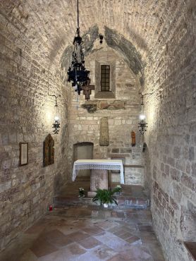 Am Donnerstag stand Fontecolombo auf dem Programm, wo der Heilige in Abgeschiedenheit seine Ordensregel verfasste. Danach fuhr die Gruppe weiter nach Greccio, wo sie nach einem gemeinsamen Pastaessen den Ort besuchte, an dem Franziskus die erste Weihnachtskrippe inszenierte. Dort sang die Gemeinschaft „Stille Nacht“ und feierte die heilige Messe in besonderer Verbundenheit mit unserem Bischof Dr. Rudolf Voderholzer, der an diesem Tag seinen Geburtstag beging.