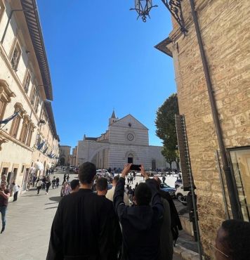 Am Mittwoch führte der deutschstämmige Franziskanerbruder Thomas Freidel die Seminaristen durch die Basilika des heiligen Franziskus und erläuterte den theologischen Hintergrund der berühmten Giotto-Fresken in der Oberkirche. Anschließend besuchte die Gruppe die Eremo delle Carceri, wo Franziskus in Stille betete und einfach lebte. Die Seminaristen waren beeindruckt von der Schlichtheit seiner Lebensweise – selbst sein „Bett“ war kaum mehr als eine Steinbank. Nach der Eucharistiefeier ging es weiter zur Basilika Santa Maria degli Angeli, die die Portiunkula-Kapelle beherbergt – jenen Ort, den Franziskus aufbaute und an dem er schließlich starb.