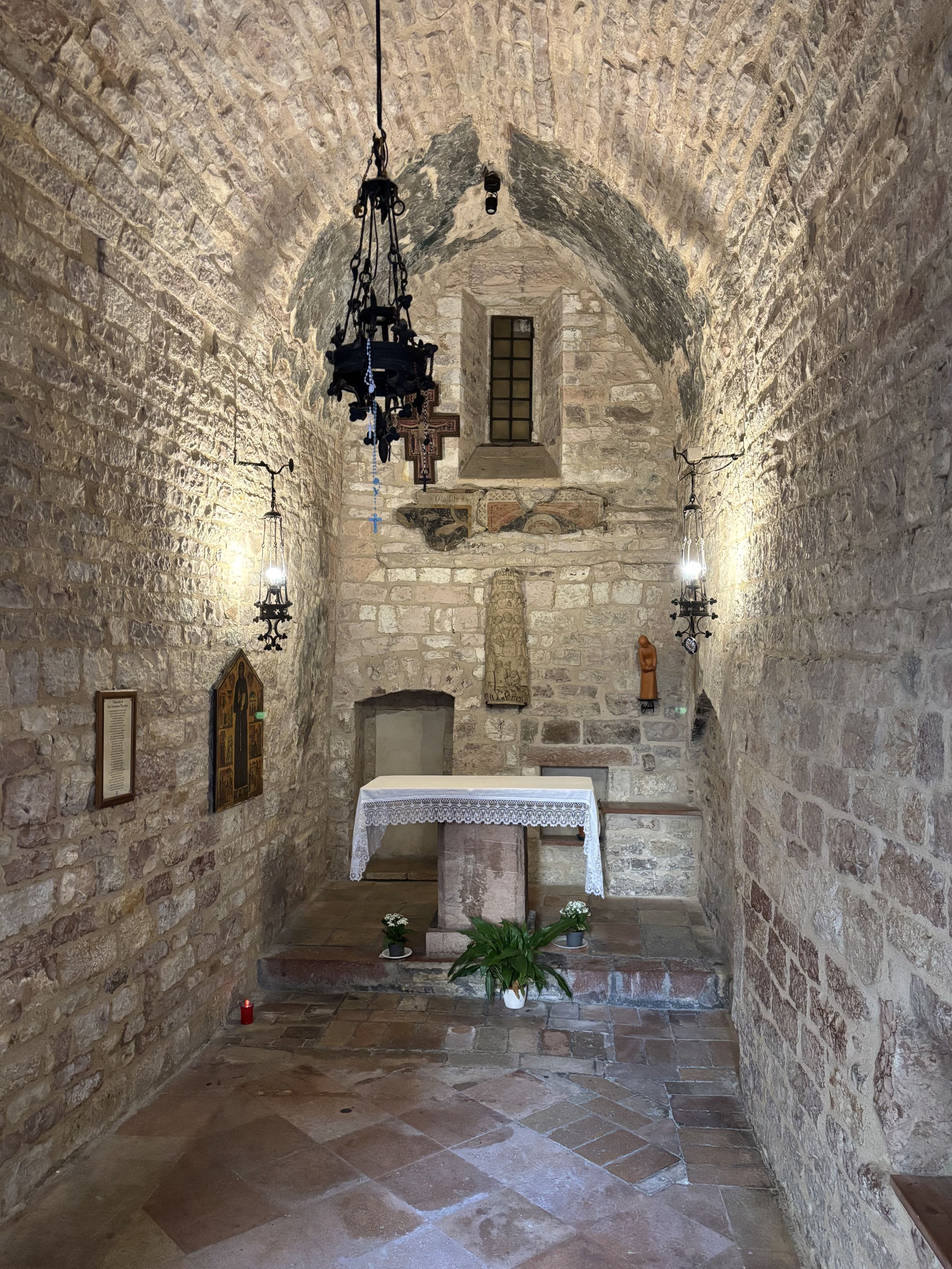 Am Dienstagvormittag widmete sich die Gruppe der Kindheit des Heiligen: dem Haus seiner Geburt und seiner Taufe in San Rufino. Am Nachmittag ging es bergab zur Kirche San Damiano, wo Franziskus seine Berufung erkannte. Dort beteten alle gemeinsam den Sonnengesang. Nach dem beschwerlichen Rückweg unter der warmen Sonne folgte der Besuch des Grabes der heiligen Klara in der gleichnamigen Kirche. Besonders bewegend war für die Mitbrüder der Besuch beim heiligen Carlo Acutis in der Kirche Santa Maria Maggiore. Den Abschluss des Tages bildete die Feier der heiligen Messe in einer Kapelle des Franziskanerkonvents.