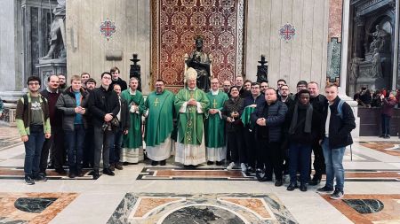 Anlässlich des Heiligen Jahres 2025 hat sich eine 25-köpfige Pilgergruppe des Priesterseminars St. Wolfgang in Regensburg auf den Weg in die Ewige Stadt Rom gemacht. Neben 22 Priesterseminaristen aus den Bistümern Regensburg und Passau, nahmen auch die drei Mitglieder der Vorstandschaft des Priesterseminars an der Pilgerreise teil.