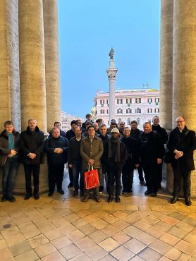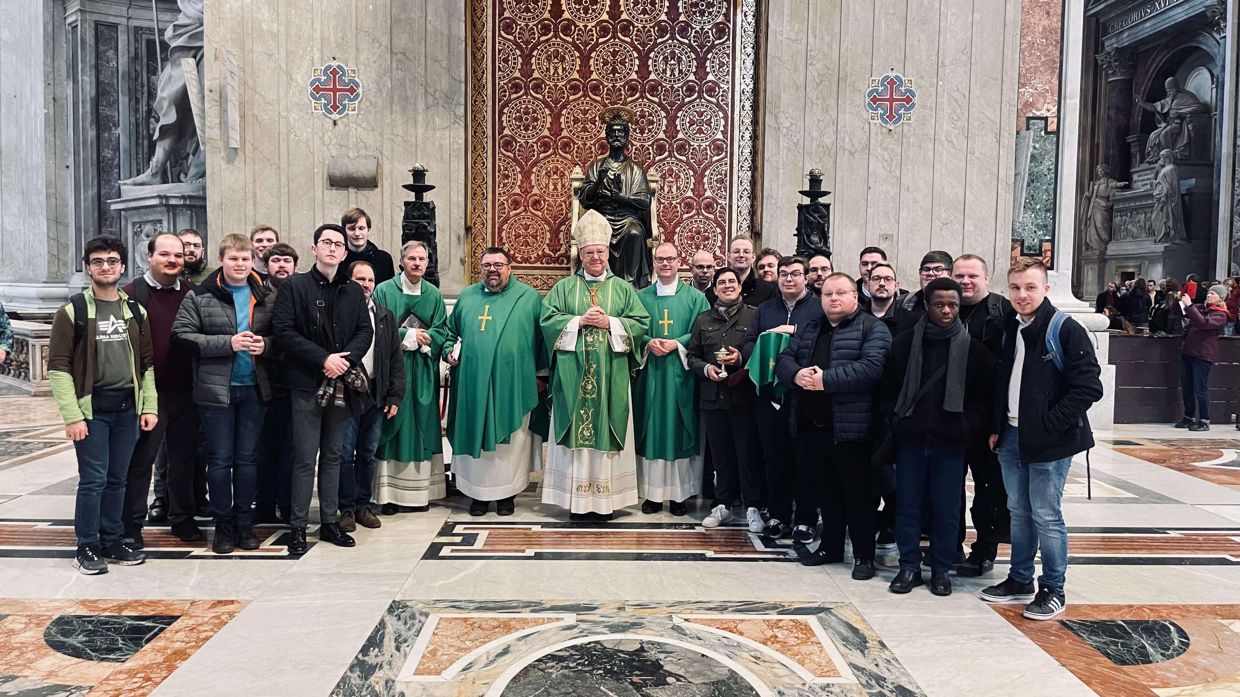 Am Vorabend der Abreise fanden sich die Reiseteilnehmer bei der Vesper und einer geistlichen Einstimmung im Priesterseminar ein. Am 22. Februar 2025 war es dann so weit und die Gruppe machte sich auf den Weg nach Rom. Nach Bezug der Unterkunft in der Nähe des Petersplatzes machten wir uns auch schon auf zum ersten Ziel unserer Reise und begaben uns nach Trastevere. Dort feierten wir gemeinsam die Hl. Messe in der Kirche San Bartolomeo all´Isola. Es schloss sich ein Spaziergang durch Trastevere an, bei dem auch die Kirche San Crisogono mit ihren frühchristlichen Ausgrabungen besichtigt wurde. Nach dieser eindrucksvollen Möglichkeit auf der Spur der ersten Christen zu wandeln, ließen wir den Abend in Kleingruppen ausklingen.
