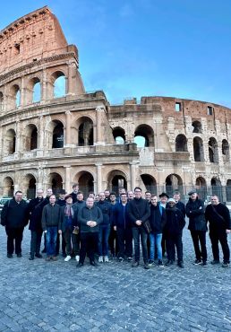 Am 23. Februar war der erste Programmpunkt die Sonntagsmesse in der Zentrale des Malteserordens. So war es uns möglich hinter die Türe mit dem berühmten Schlüsselloch auf dem Aventin zu blicken. Mit der Kirche Santa Sabina stand ein weiteres Zeugnis des frühen Christentums in unmittelbarer Nähe zur Malteserzentrale auf dem Plan. Nach der Mittagspause begaben wir uns nach einem kleinen geistlichen Impuls durch unseren Spiritual, Matthias Effhauser, zur ersten Heiligen Pforte in der Lateranbasilika. Es schloss sich eine Führung durch die Basilika durch unseren Regens, Dr. Daniel Stark, an und anschließend bestand die Möglichkeit zur Besichtigung und zum persönlichen Gebet. Danach machten wir ein kleinen Spaziergang nach Santa Croce, bevor wir uns auf den Weg nach Sant´Agnese machten. Dort bekamen wir eine Führung durch die Kirche und die dortige Katakombe, die teilweise freigelegt wurde. In einem zweiten Teil der Führung wurden wir von einem Mitbruder, der sich derzeit im Freijahr in Rom befindet, durch die Anlage geführt. Zum Tagesabschluss waren wir zum Abendessen im Gästehaus des Deutschen Ordens eingeladen.